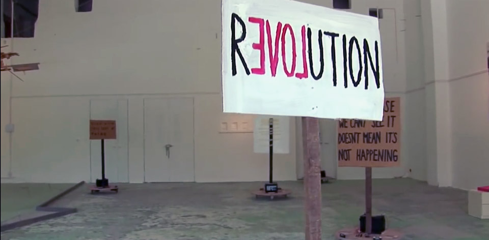 Activists di Nika Oblak e Primoz Novak affronta criticamente il problema della delega, facendo in modo che i robot sostituiscano l’uomo in un’altro ambito, la protesta. Robot meccanici si muovono autonomamente in una zona delimitata, esprimendo opinioni al posto dell’uomo. Siamo in grado di agire per creare un cambiamento?
